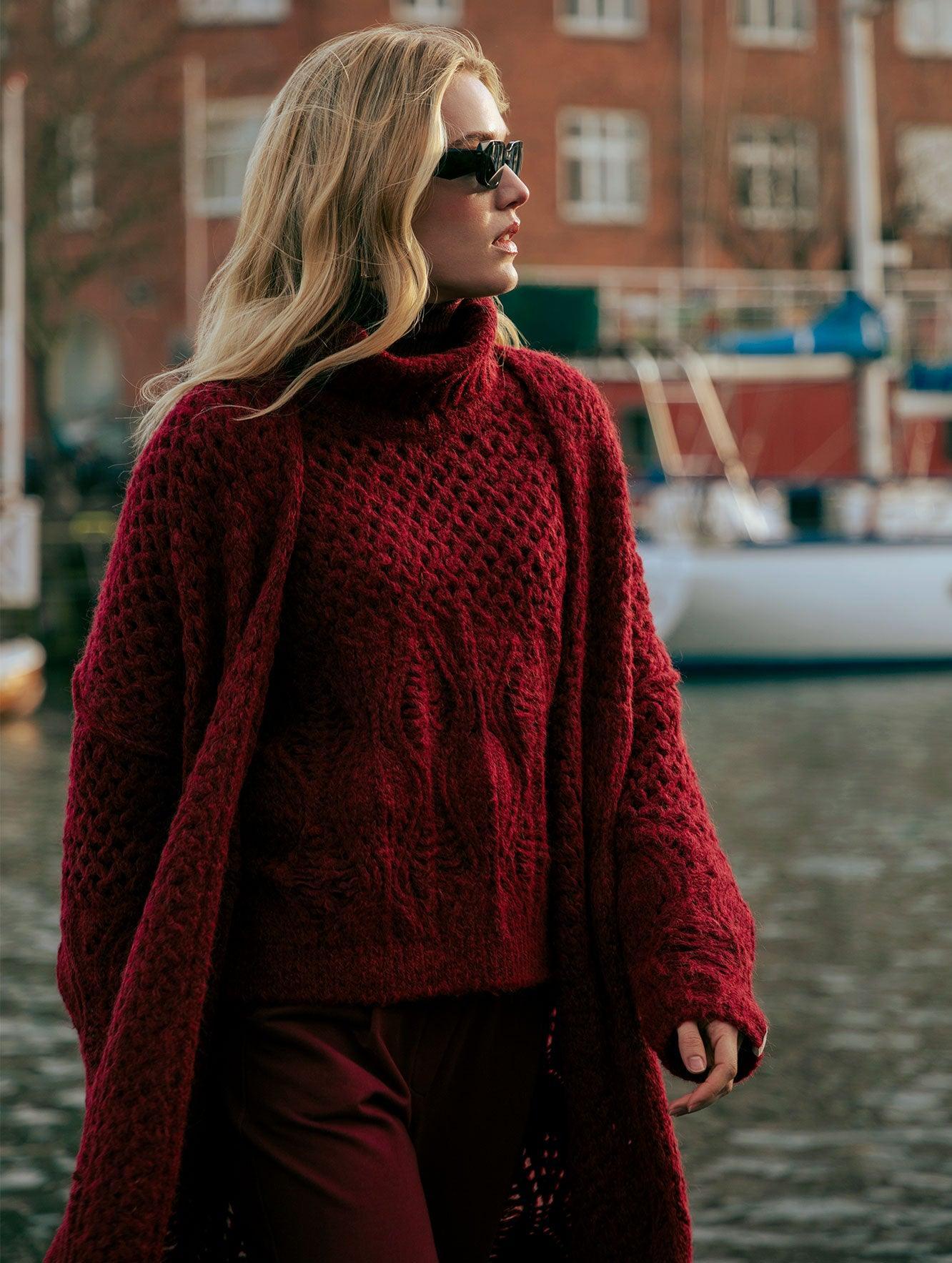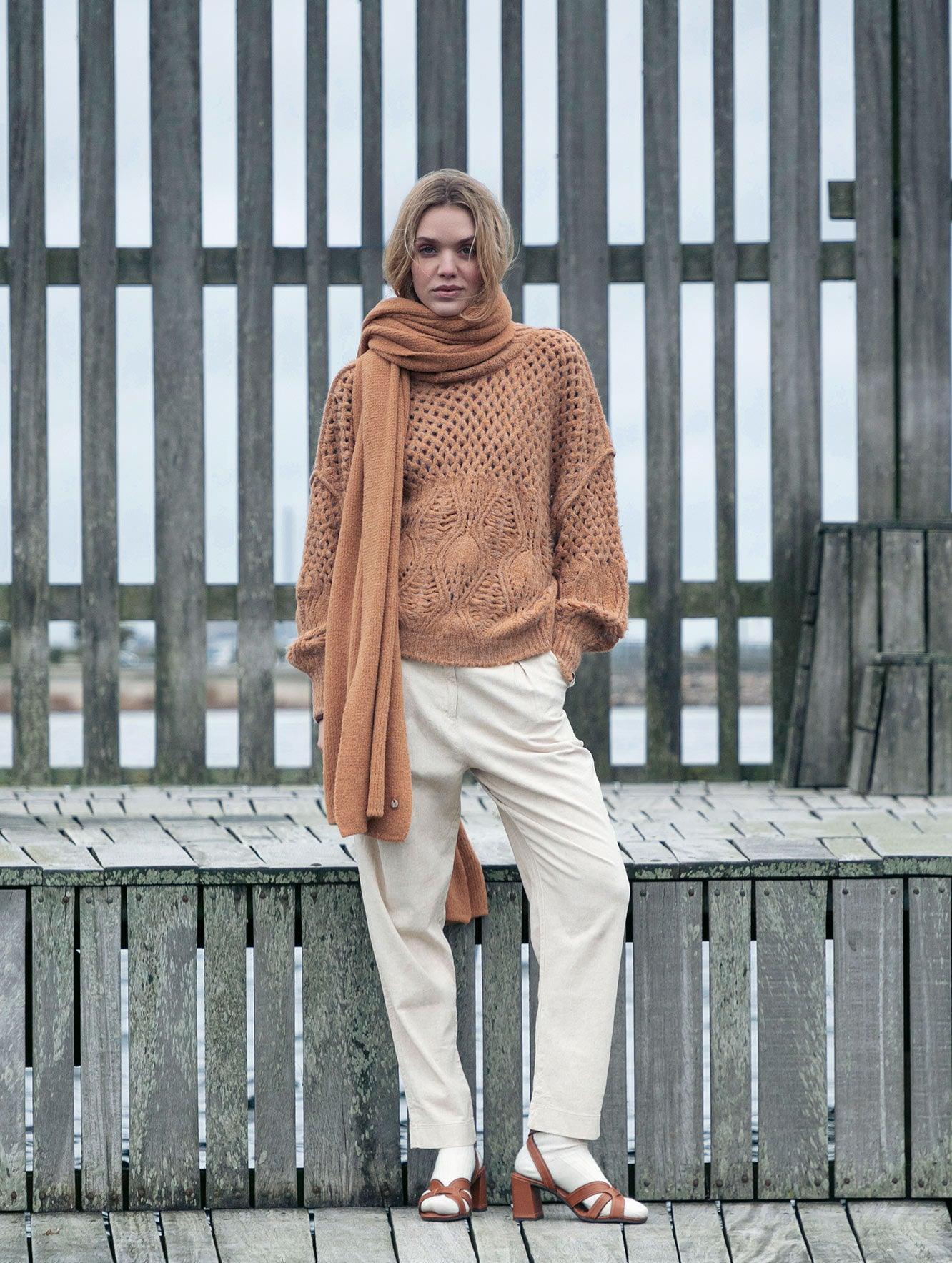 Blusa Atena com gola alta e ampla, pontos vazados e mangas de cava quadrada Biamar, traz sofisticação, conforto e um toque moderno ao visual. Ideal para looks versáteis e elegantes. Aposte!