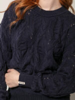 A textura é protagonista na blusa de algodão com tecimento em tranças, gola redonda e mangas de cava quadrada Biamar. Em fibras naturais, acolhe e mantem aquecida por muito mais tempo. Aposte!