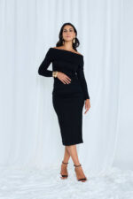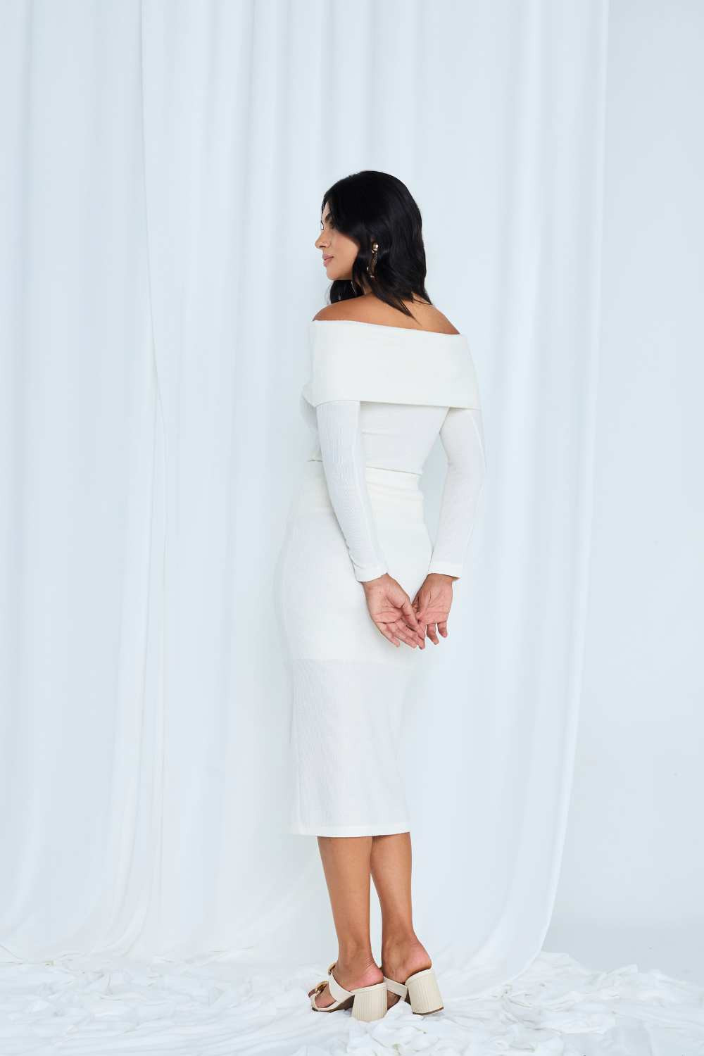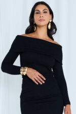 Blusa em malha tipo ribana. Decote ombro a ombro e shape justo ao corpo. Manga longa. Peça básica perfeita para compor vários looks.