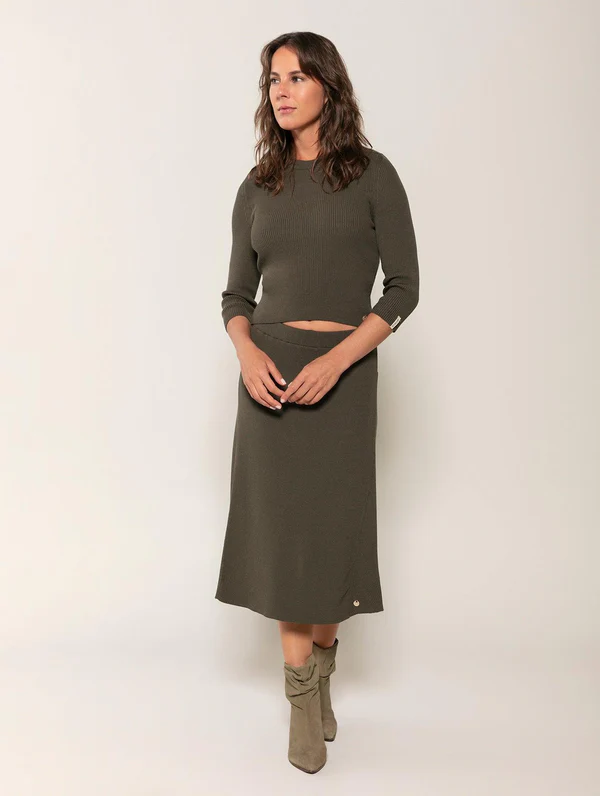 Sinônimo de elegância e conforto, a saia evasê canelada Biamar reúne fios de alta qualidade em um modelo democrático, com movimento e estilo. Aposte!