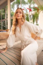 Vestido midi em Linho, com mangas bufantes bordadas e faixa para amarração na cintura. Leve e sofisticado, perfeito para um look elegante e atemporal.