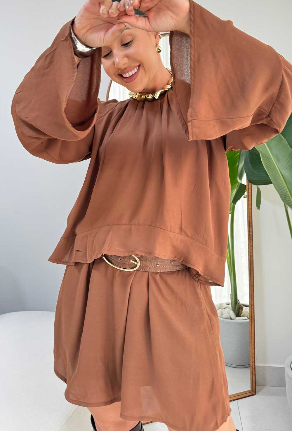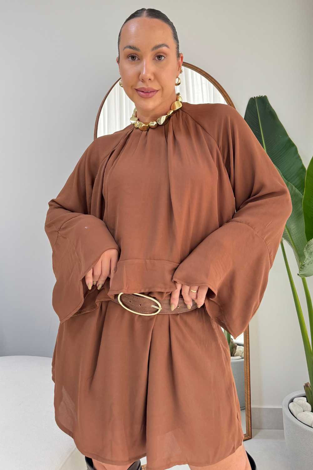 Vestido Curto Valentine é confeccionado em crepe de modelagem solta ao corpo com saia e manga em babado. Gola franzida com amarração nas costas e estilo boho, tendência da temporada. Aposte!
